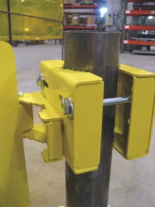PS Safety Access™ offers optional Adapter Brackets for customers with unique mounting needs. If mounting your EdgeHalt Ladder Safety Gate to angle iron, flat bar, or a non-standard railing system, gate bolts directly to existing railing (hardware not included) or by purchasing and using a ‘no drill’ adapter bracket. Adapter Brackets are utilized ONLY when a customer cannot use standard gate mounting hardware and/or does not want to drill into their existing railing system.